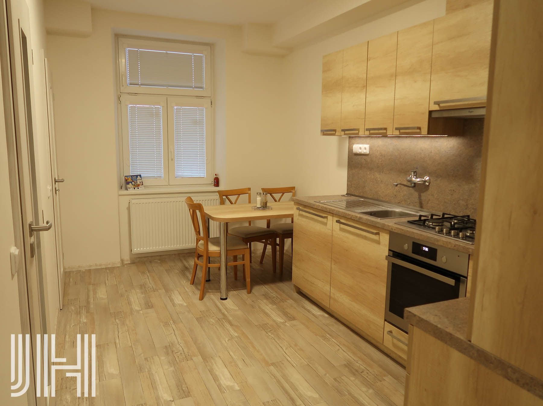 Nabízíme k pronájmu zděný prostorný byt vel. 1+1, o ploše 42 m2, nacházející se v 1. patře bytového domu na jihozápadním okraji Prostějova. Byt je přístupný po společné pavlači, má vstupní chodbu, kuchyň, pokoj orientovaný na jižní stranu, koupelnu (roh. vana, umyvadlo včetně nábytku, místo pro pračku) a samostatné WC. K bytu je k dispozici sklep v suterénu domu. Byt je nezařízený, vybaven pouze kuchyňskou linkou včetně spotřebičů (sporák, digestoř, lednice), jídelním stolem a židlemi, laminátové podlahy a žaluzie. Vlastní plynové vytápění i ohřev teplé vody. Byt volný od 1.12.2025. Parkování možné před domem. Byt bude vymalovaný bílou barvou. Nájemné bez energií, záloha na vodné, stočné 400 Kč/měsíc/1 osoba, elektroměr a plynoměr se převádí na nájemce (cca 2.000 Kč). PENB – C.